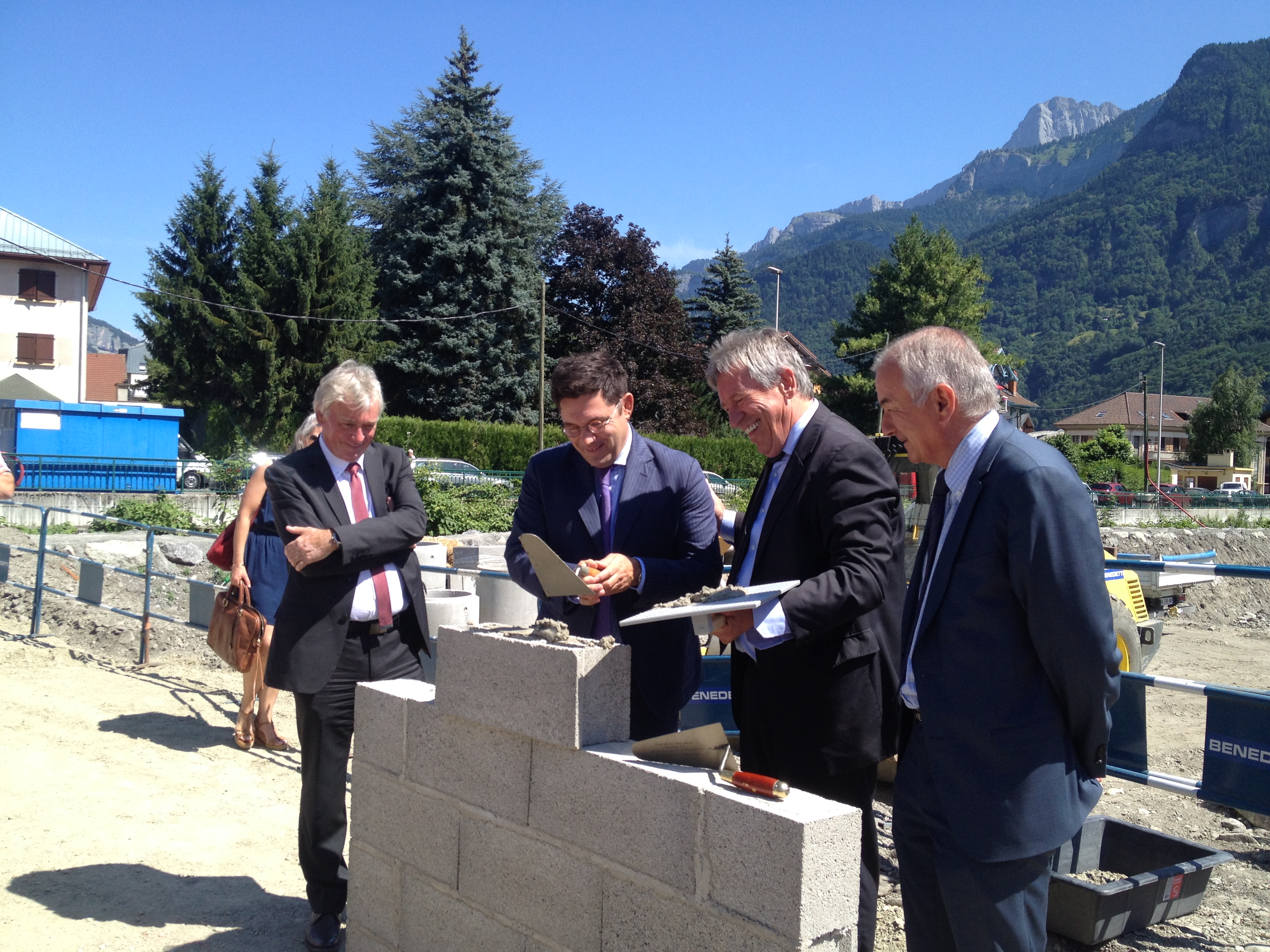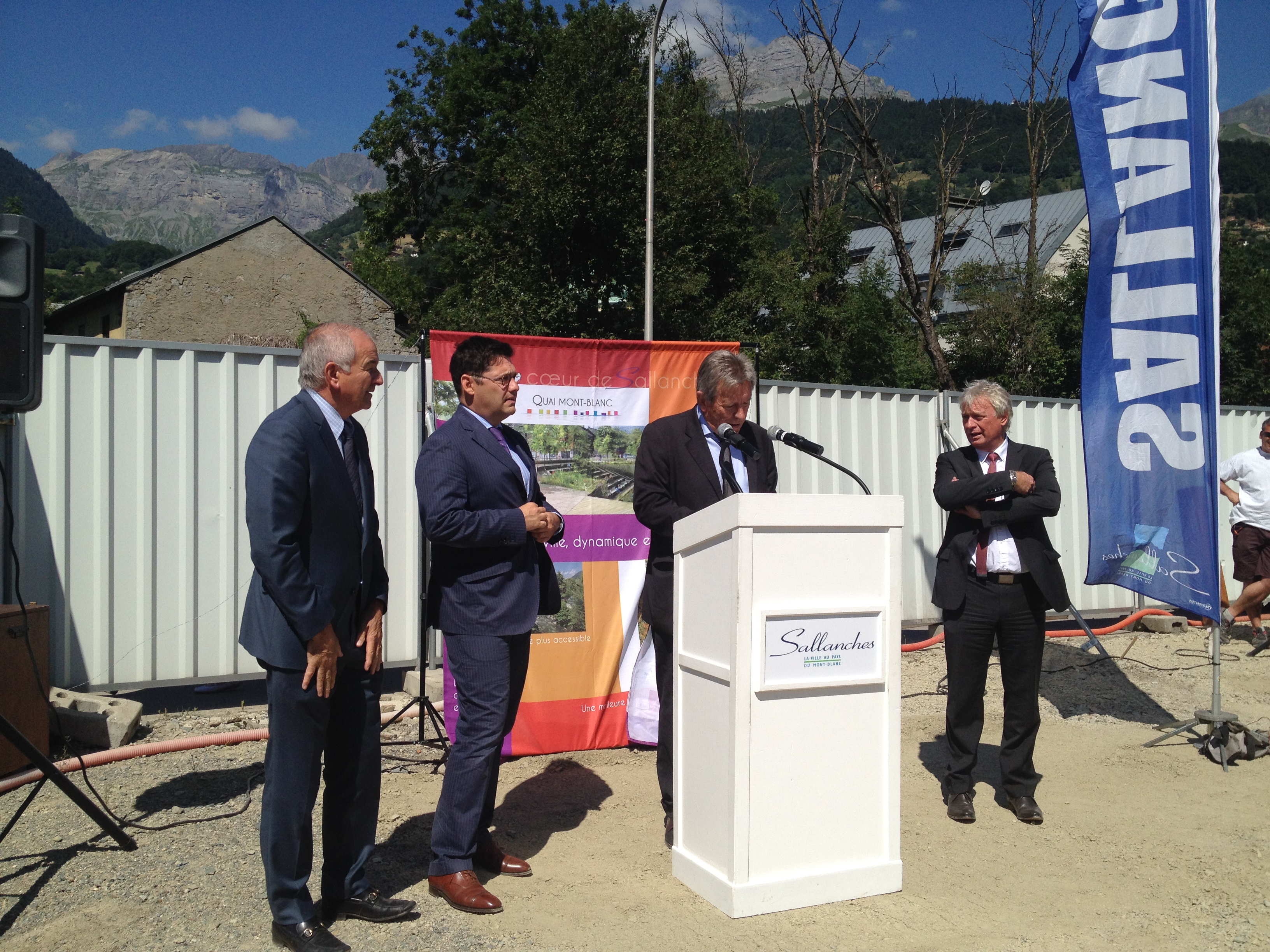 Monsieur le Maire de Sallanches (Georges Morand), Monsieur le Préfet (Georges-François Leclerc), Denis Duvernay (Président de Teractem), et Monsieur le Sénateur Jean-Claude Carle ont réitéré leur soutien à l’aménagement de ce cœur de ville, comme étant l’un des maillons des grands chantiers en cours avec notamment l’Entrée de ville et la Place Centrale.