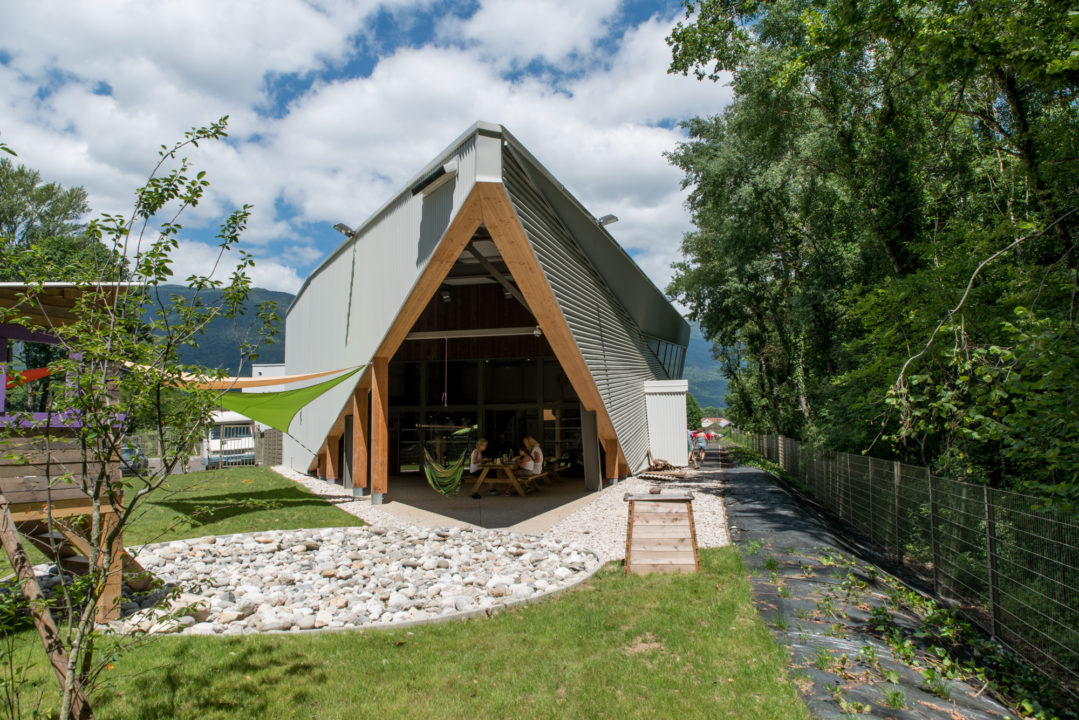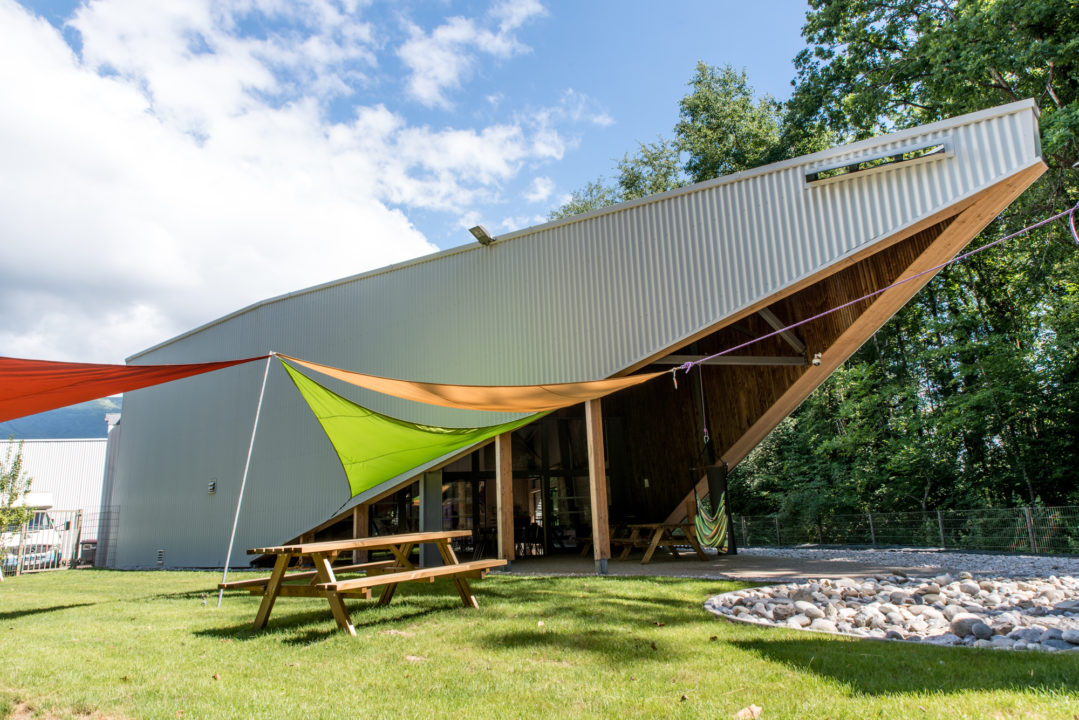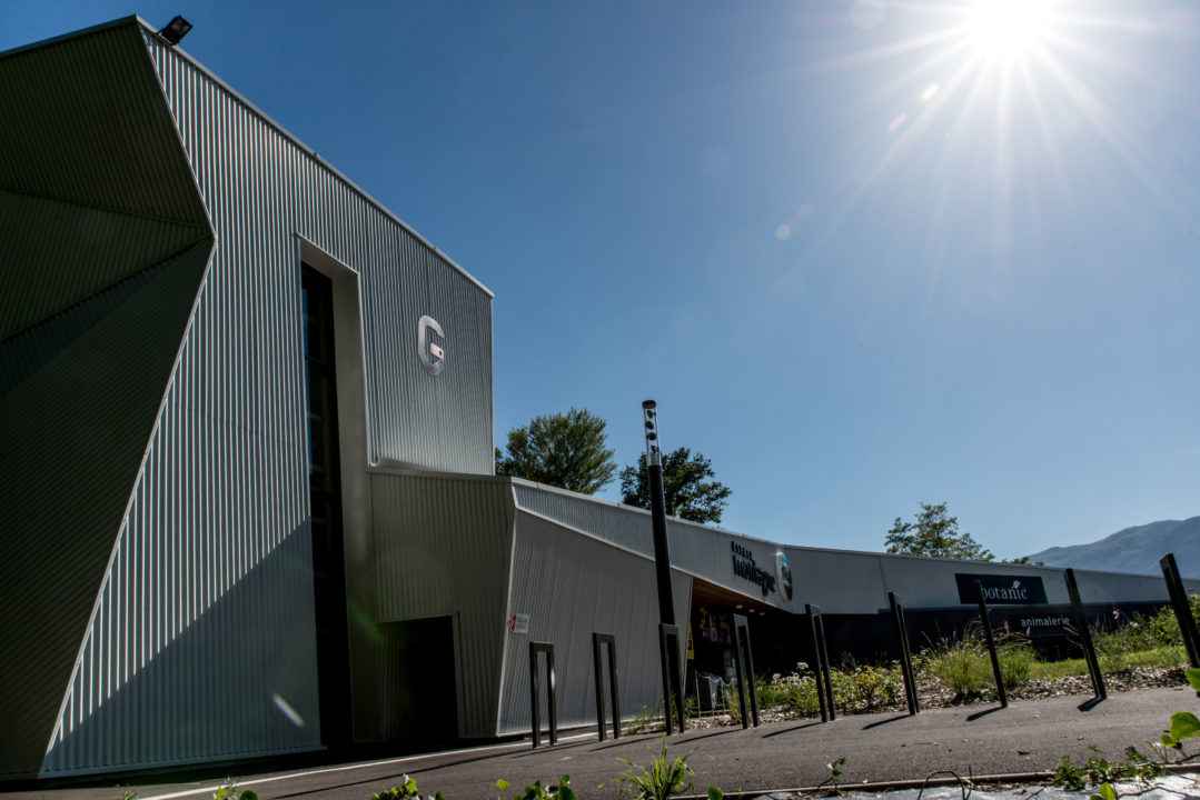 Découvrez les images de ce bâtiment d’activités et de loisirs, situé à Saint-Genis Pouilly (74). Le projet accueille un salle d’escalade gérée par Cortigrimpe, un magasin Espace Montagne, ainsi qu’une animalerie pour Botanic, maître d’ouvrage de l’opération.