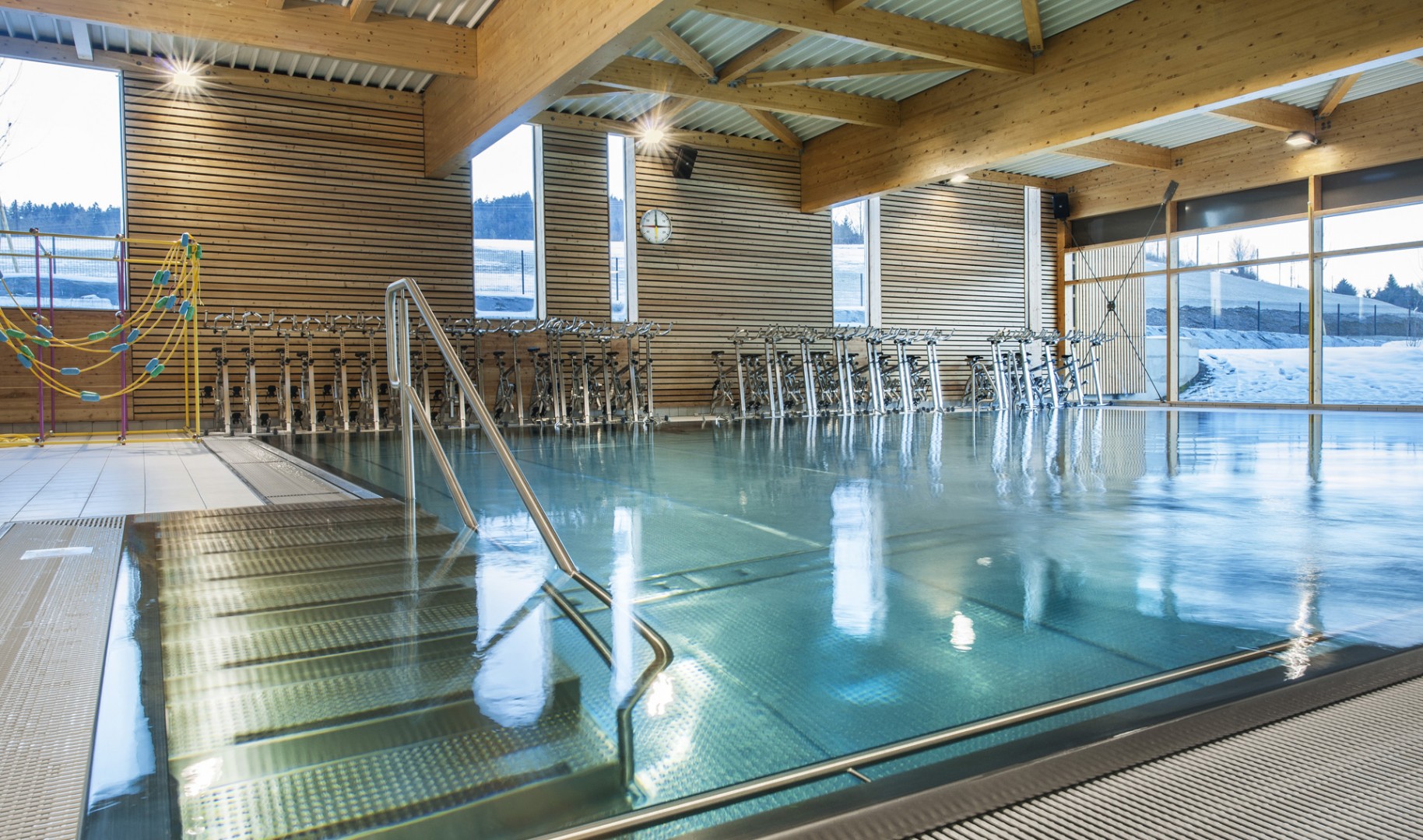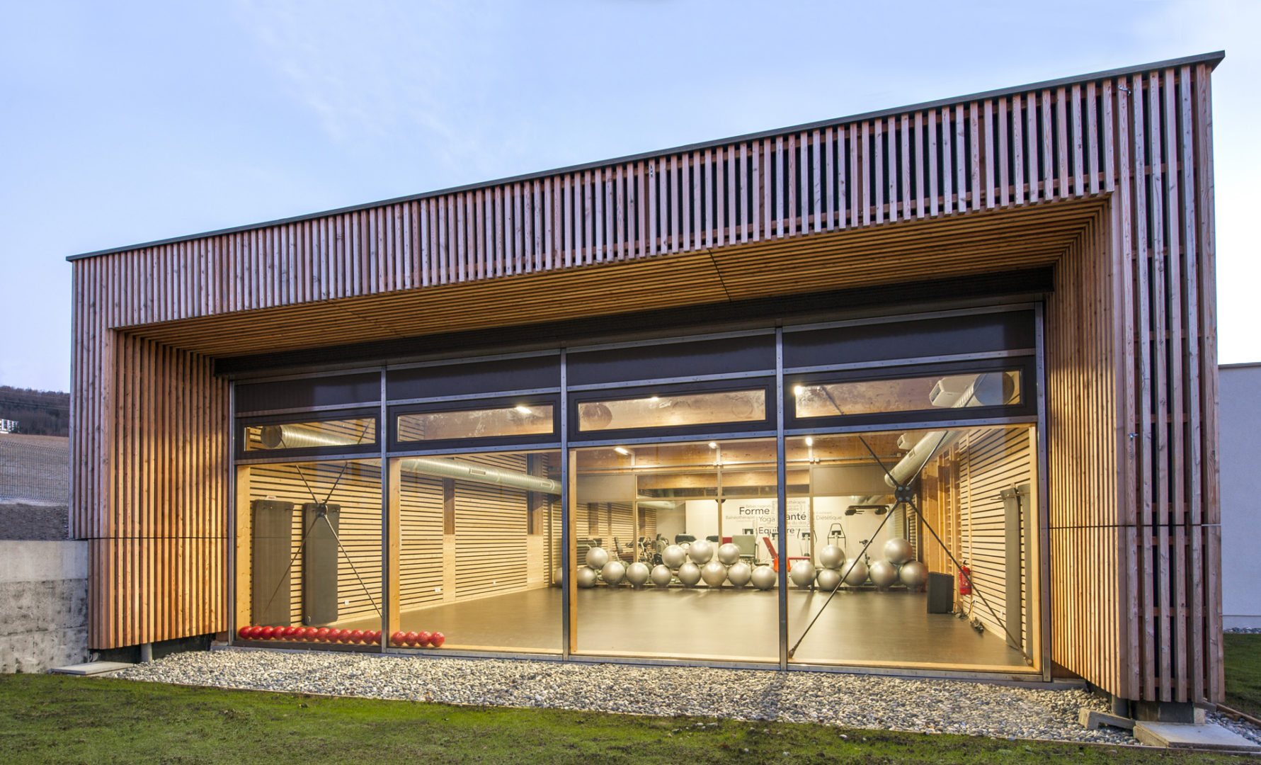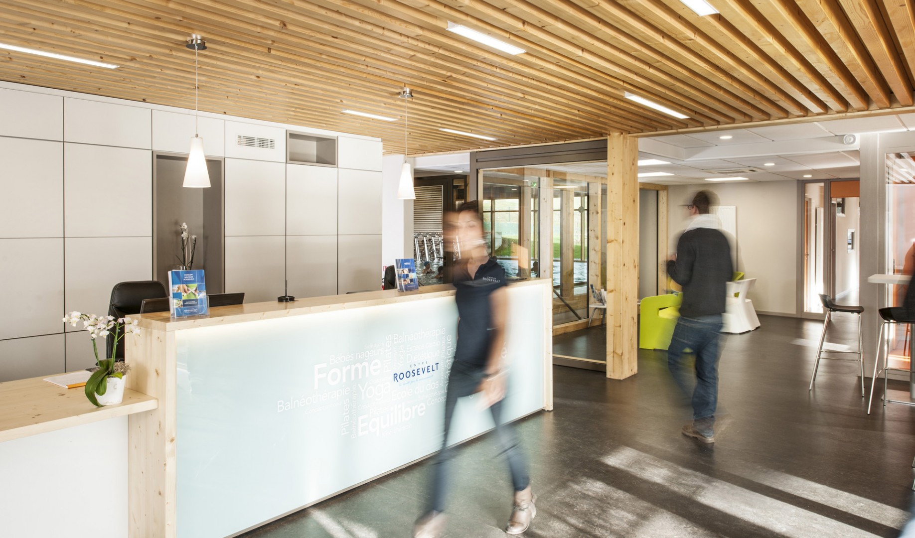 Le parti architectural retenu est l'expression par des volumes simples et indépendants des différentes composantes du programme : grands volumes des salles de rééducation ou de la piscine bardés de tasseaux bois, petits volumes des salles de massage et de soins. Il s'agit d'organiser ces différentes entités autour d’un axe central fort, qui en partant du hall d’entrée irrigue les différents secteurs, alliant la clarté des espaces de vie et des circulations et le traitement des structures et des enveloppes autour de quelques matériaux dominants comme le bois et le verre.
