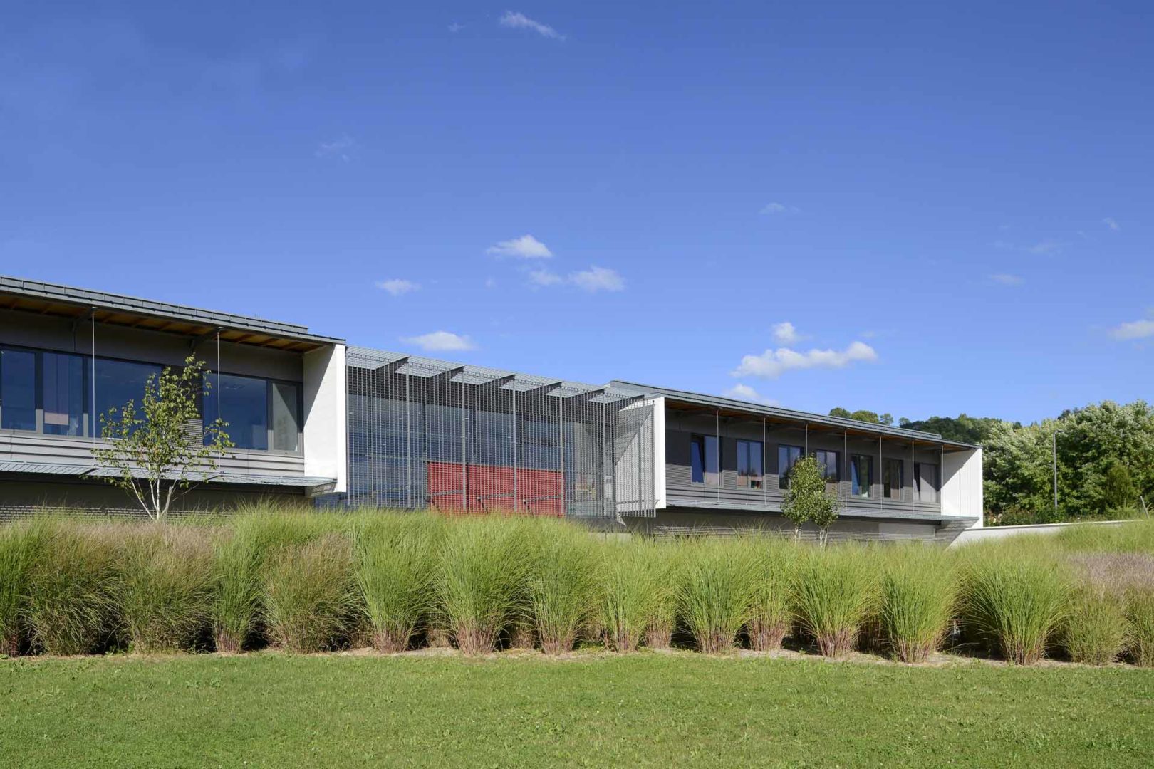 La création d'un centre bipolaire implique de concevoir deux entités identifiables, deux identités pour un programme unique. Nous avons choisi de trouver l'unité par une implantation et une volumétrie générale homogène, et de différencier les deux entités par le traitement du détail architectural et l'utilisation des matériaux, des structures et des couleurs.