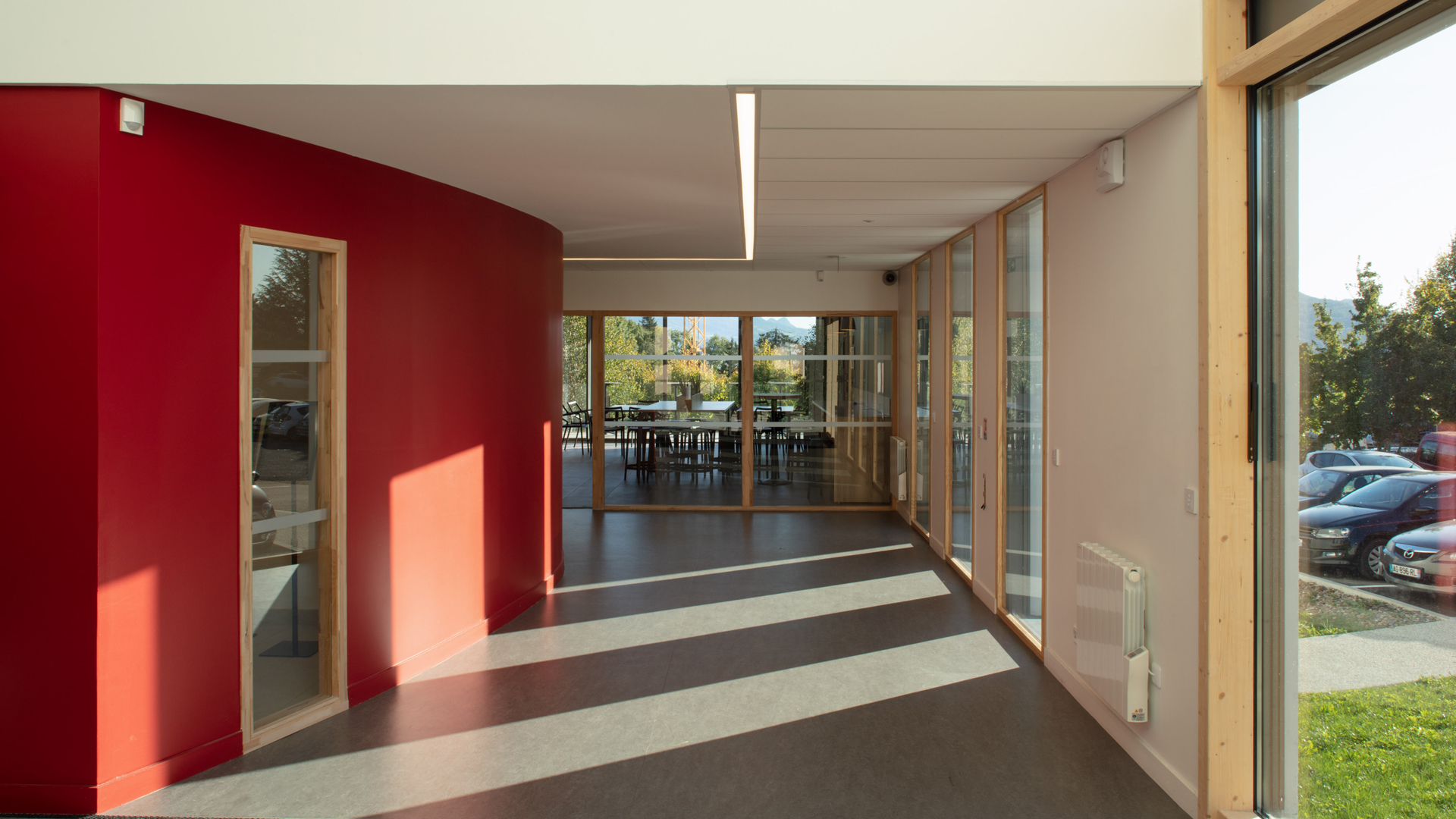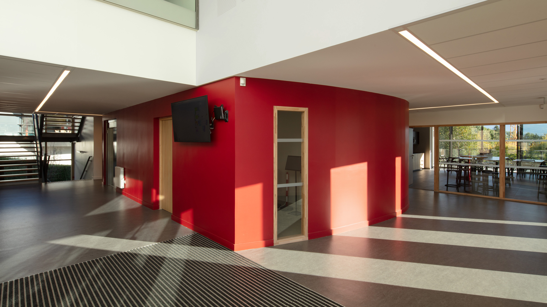 - Le volume bas, ancré dans le site, de l’entresol au rez-de chaussée. C’est le volume le plus visible depuis le domaine public en contrebas.