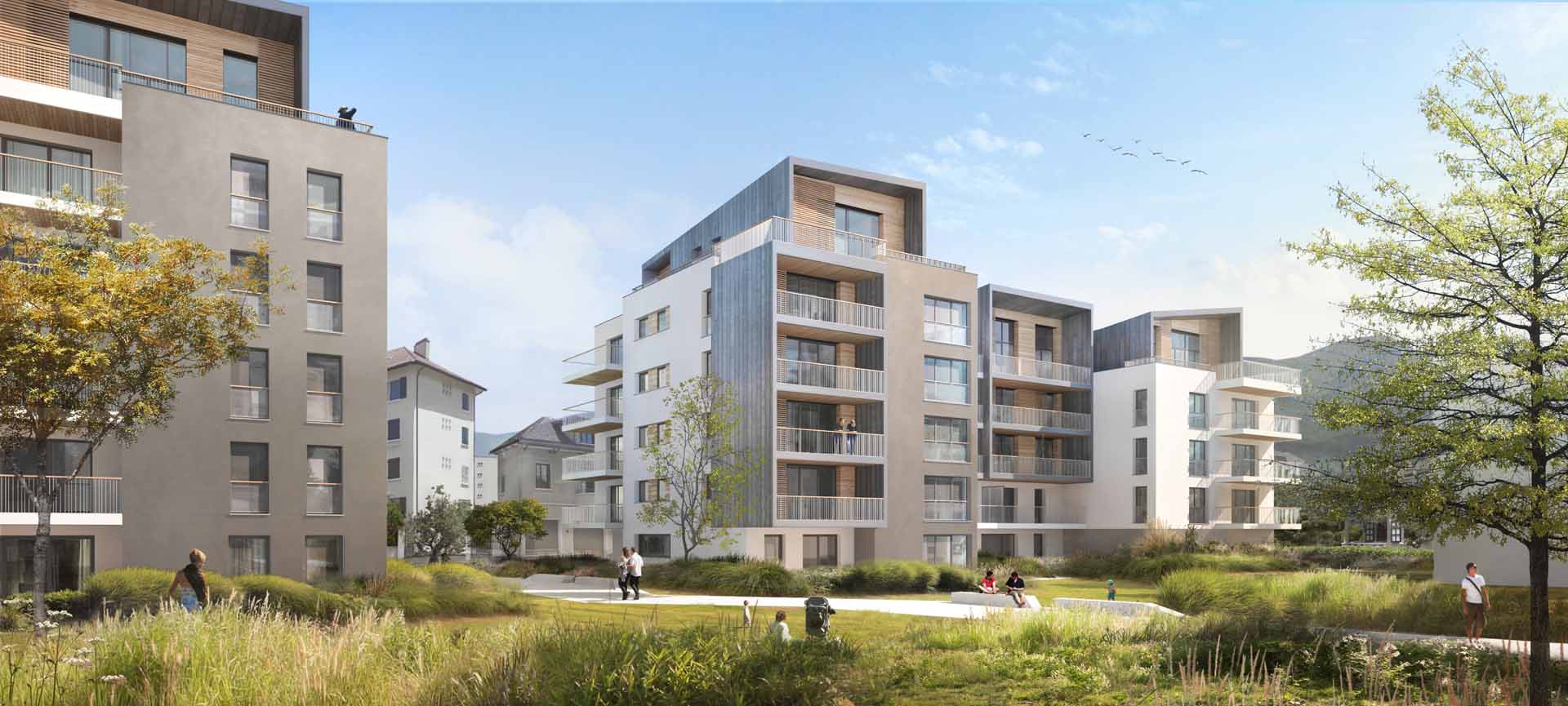 Le projet est composé de deux bâtiments qui se veulent très ouverts au sud, sur le parc. Il se caractérise par une imbrication de différents volumes aux tons clairs et aux formes orthogonales avec des volumes plus foncés, de matériaux différents, venant parfois en débord . Ceux-ci sont de forme plus libre, notamment en attique, permettant de cadrer des vues sur le grand paysage.