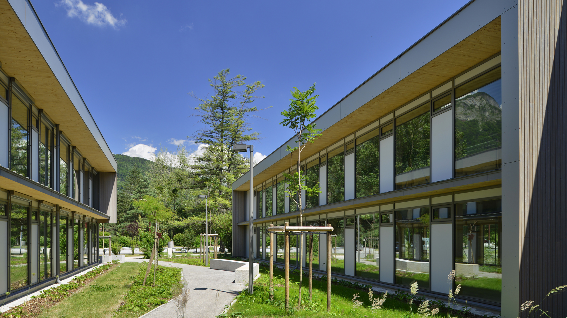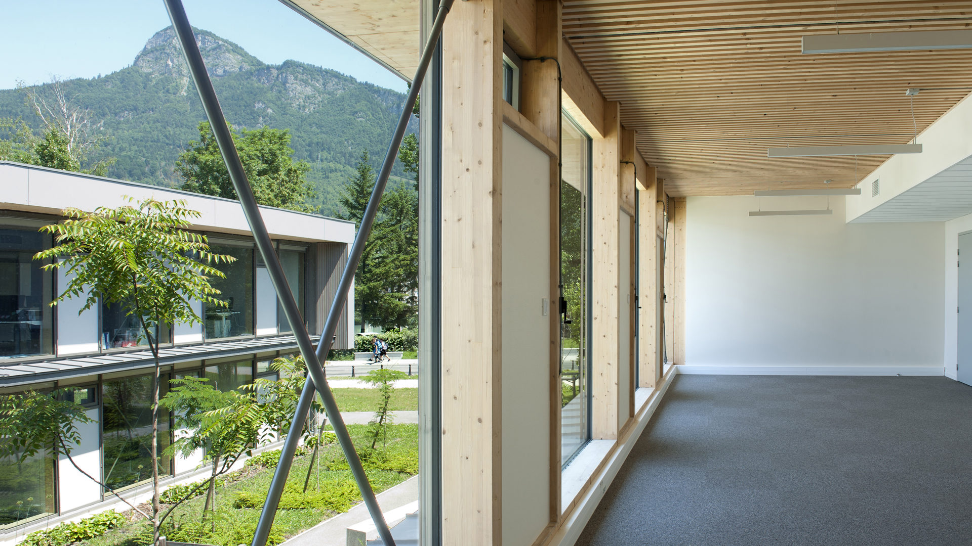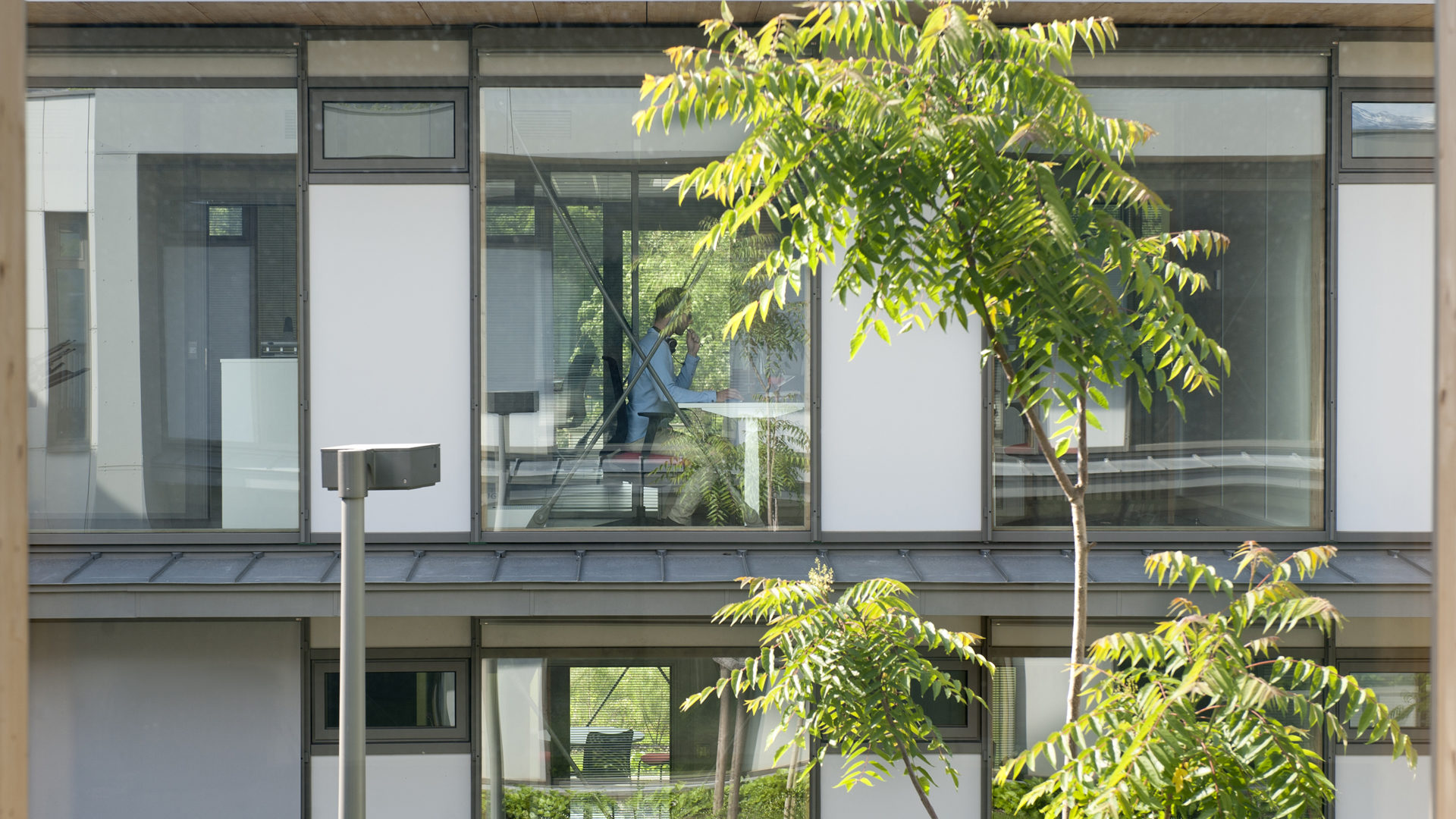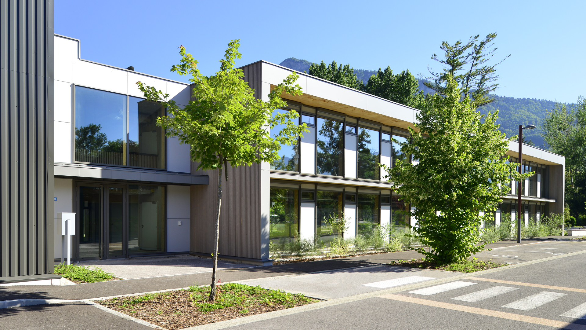 Nous avons fait le choix d’une architecture contemporaine en bois. Utilisé en structure et en façade, il est omniprésent tant à l’extérieur qu’à l’intérieur des bâtiments et contribue à la qualité des ambiances et au confort d’usage. Les dalles bois rainurées sont laissées visibles dans les espaces de travail.