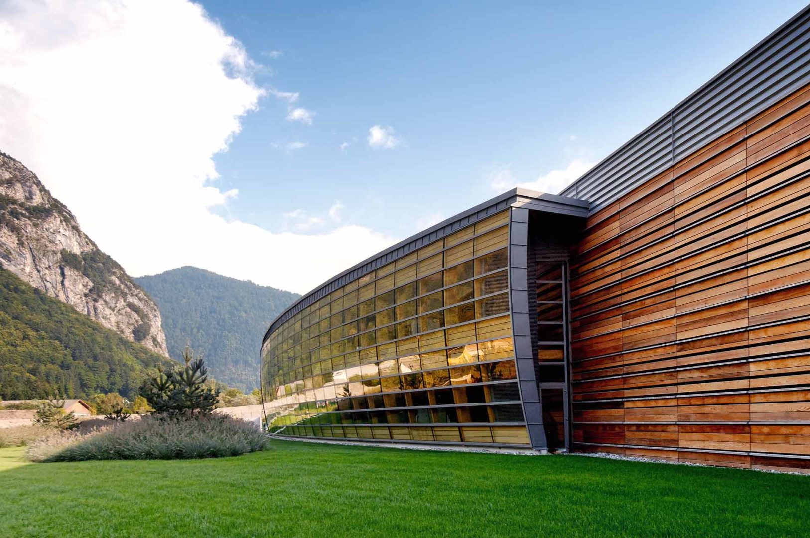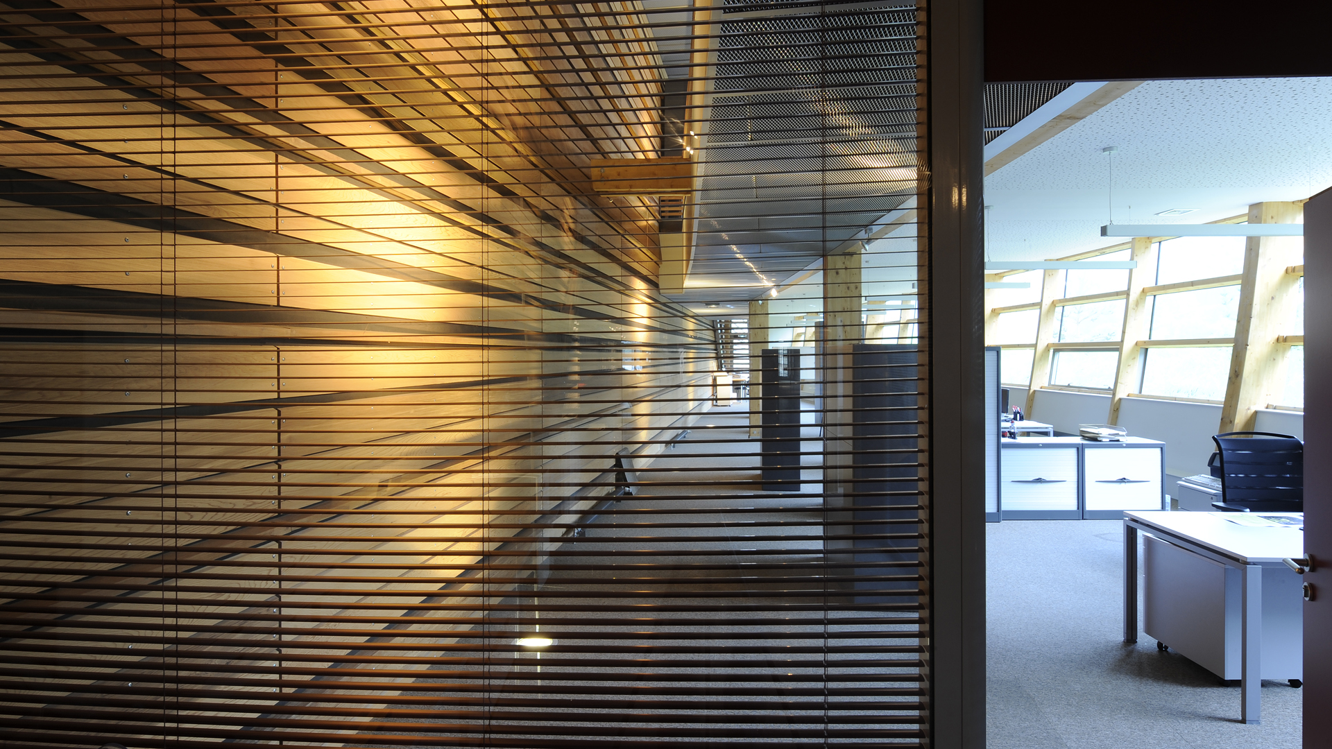 Son omniprésence relève d'une philosophie d'approche qui va de l'écologie à la passion d'un métier, en passant par la recherche d'une intégration profonde du projet dans son environnement naturel et humain.Pour les bureaux, le choix bien compris de la façade Nord en orientation principale offre des avantages indiscutables : régularité thermique aussi bien en été qu'en hiver, lumière naturelle importante sans nuisance d'éblouissement et sans contrôle solaire. L'effet de «bulle» sans aspérité permet de composer une enveloppe continue, parfaitement étanche et isolante.
