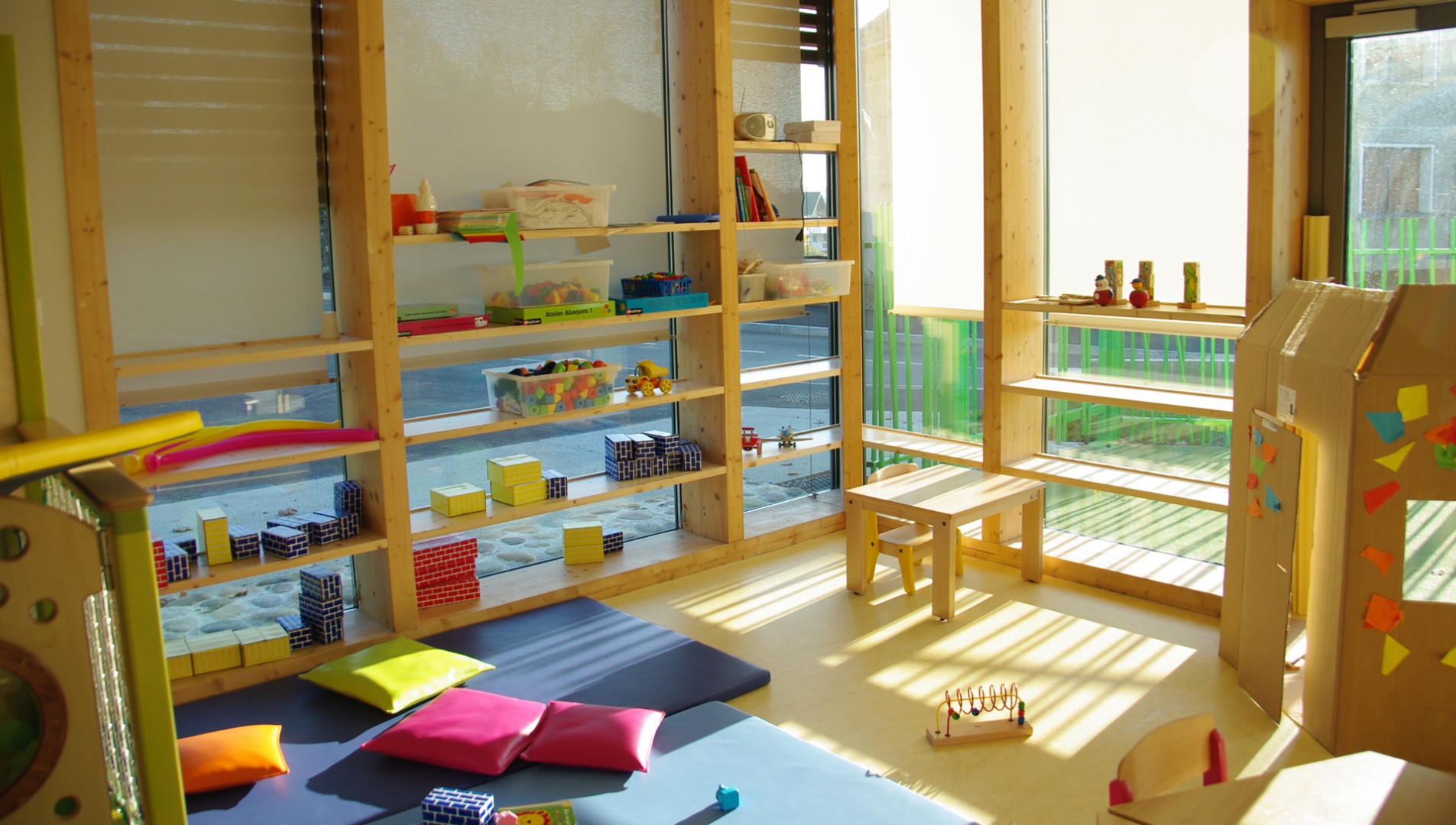 Le projet cherche à optimiser espaces et déplacements au sein du bâtiment, mais aussi à favoriser la modularité et l'évolutivité de la structure au fil du temps, en proposant une forme compacte, simple et ludique venant abriter les différentes fonctions de la crèche.